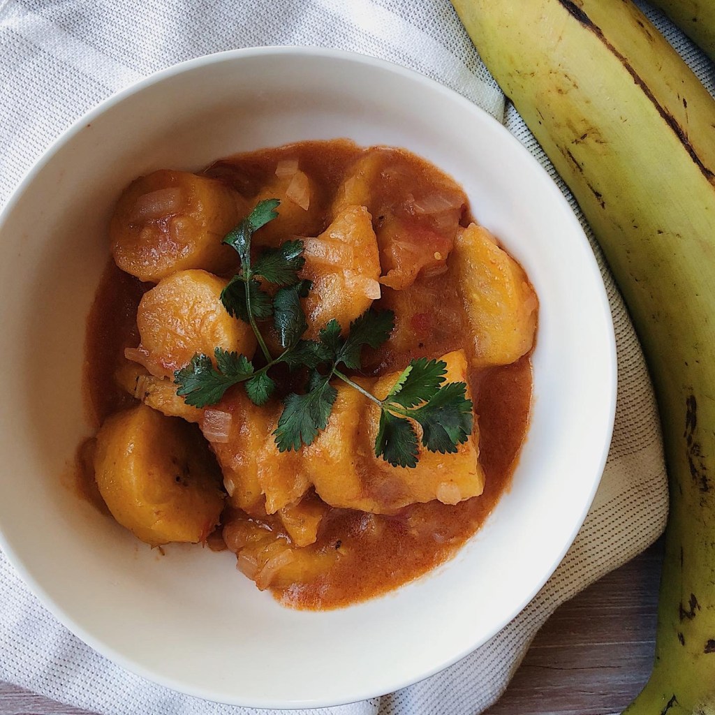 The last time I had banana stew was on my visit to Kenya, and that was more than a year ago. I cannot find any word in the English dictionary to express how much I love cooked bananas. Growing up they were one of my favorite dishes. My mom often served it with almost anything. Sometimes with chai in the morning/evening, or with veggies and meat for lunch/dinner, or simply on its own as a snack. Green bananas are not very common in the western world and I have yet to find any store that carries them. Last week after a visit to the local market I found some plantains and decided to use them as a substitute for green bananas. I am here to report that although there is a slight difference in flavor; plantains work as a great substitute. If you’re ever looking for new ways to prepare plantains, I highly recommend my mother’s recipe which I have below. It is an extremely delicious savory dish filled with flavors that will leave you craving for more. Trust me you will thank me later.